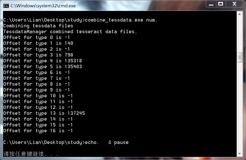 rem 执行改批处理前先要目录下创建font_properties文件 echo Run Tesseract for Training.. tesseract.exe num.font.exp0.tif num.font.exp0 nobatch box.train echo Compute the Character Set.. unicharset_extractor.exe num.font.exp0.box mftraining -F font_properties -U unicharset -O num.unicharset num.font.exp0.tr echo Clustering.. cntraining.exe num.font.exp0.tr echo Rename Files.. rename normproto num.normproto rename inttemp num.inttemp rename pffmtable num.pffmtable rename shapetable num.shapetable echo Create Tessdata.. combine_tessdata.exe num. echo. & pause