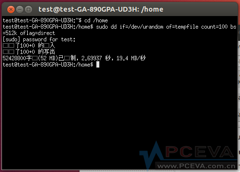 - sudo dd if=/dev/urandom of=tempfile count=100 bs=512k oflag=direct
