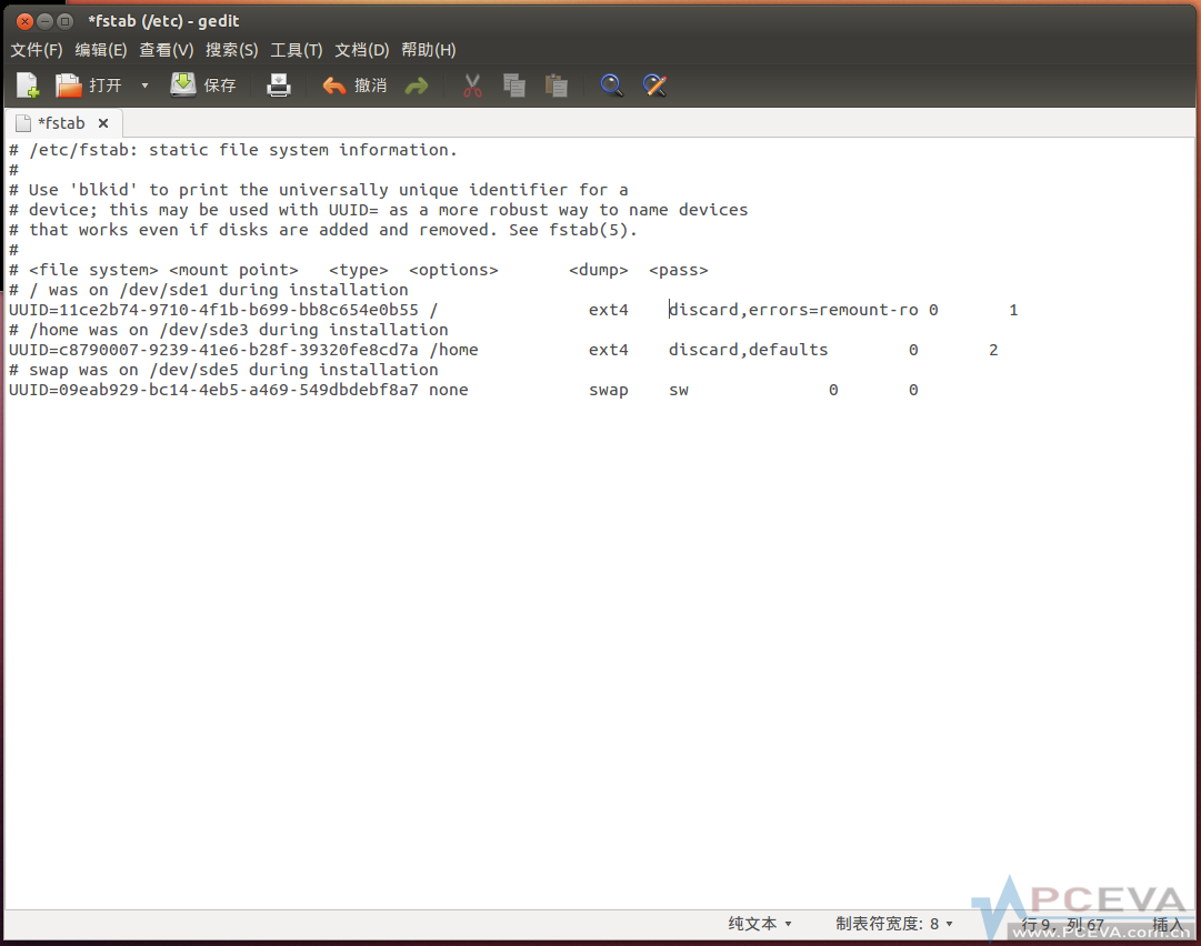 - gksudo gedit /etc/fstab