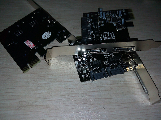 SATA扩展卡性价比比较高的有两种,2口的33,4口的85(机械硬盘速度最高100MByte/s,用不到SATA3)