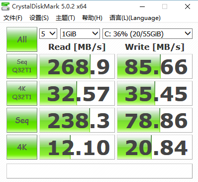 新U盘典型值 顺序读80MByte/s 顺序写20MByte/s