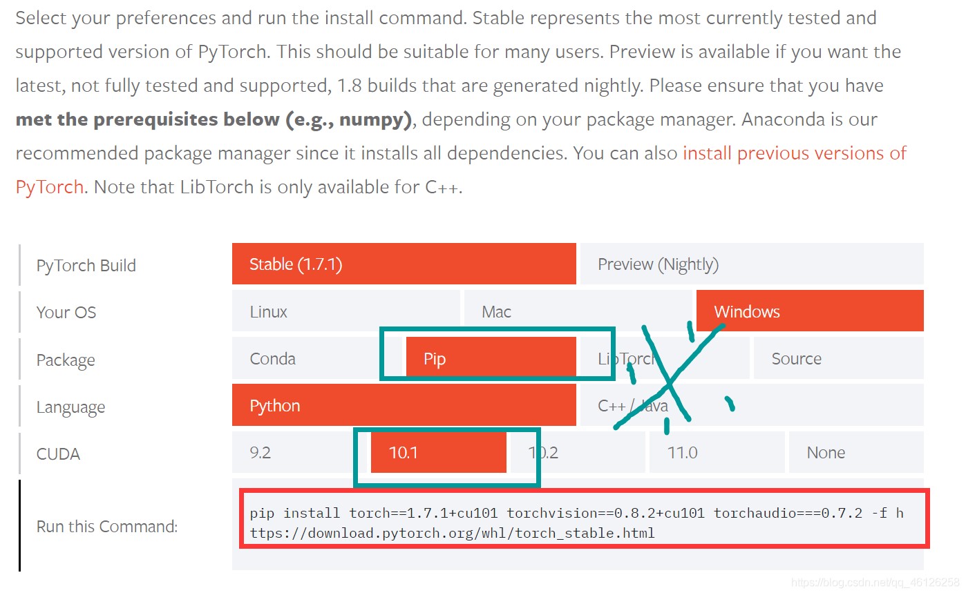 将最下面的红框区域pip install torch==1.7.1+cu101 torchvision==0.8.2+cu101