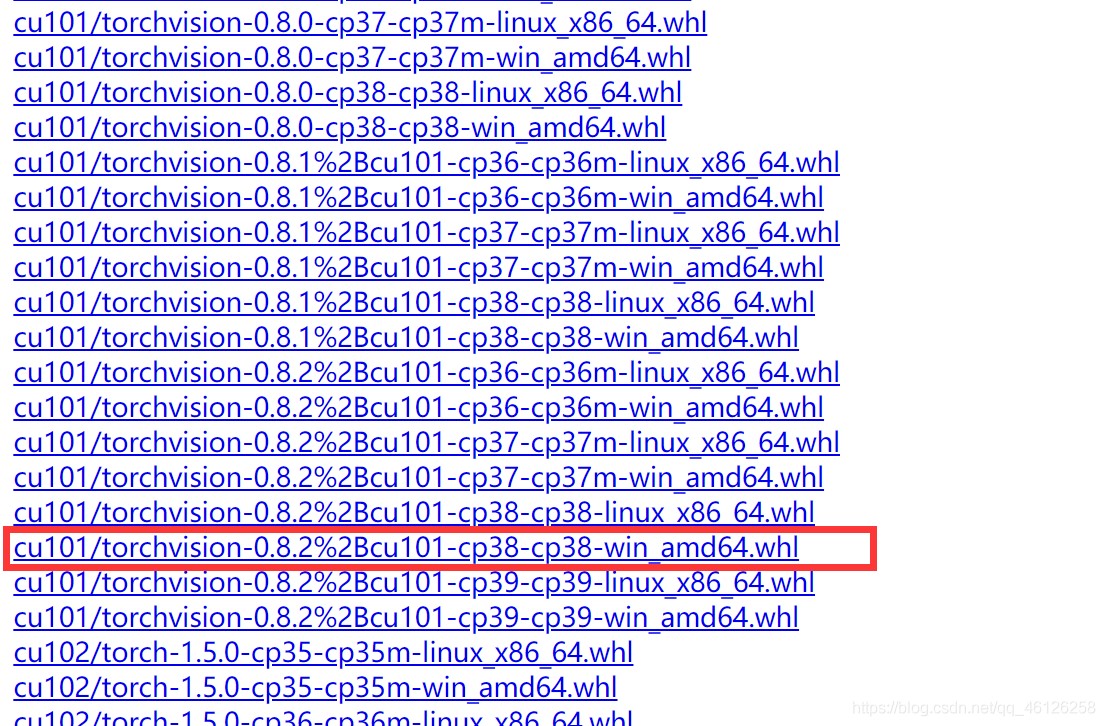 - 下载torchvision==0.8.2+cu101同理我选择cp38的