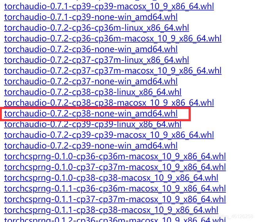 - 下载torchaudio===0.7.2同理选择cp38的
