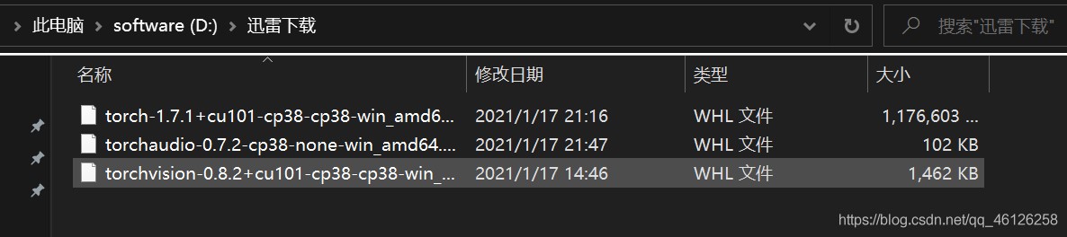 例如:cu101表示cuda10.1,那么需要下载这三项