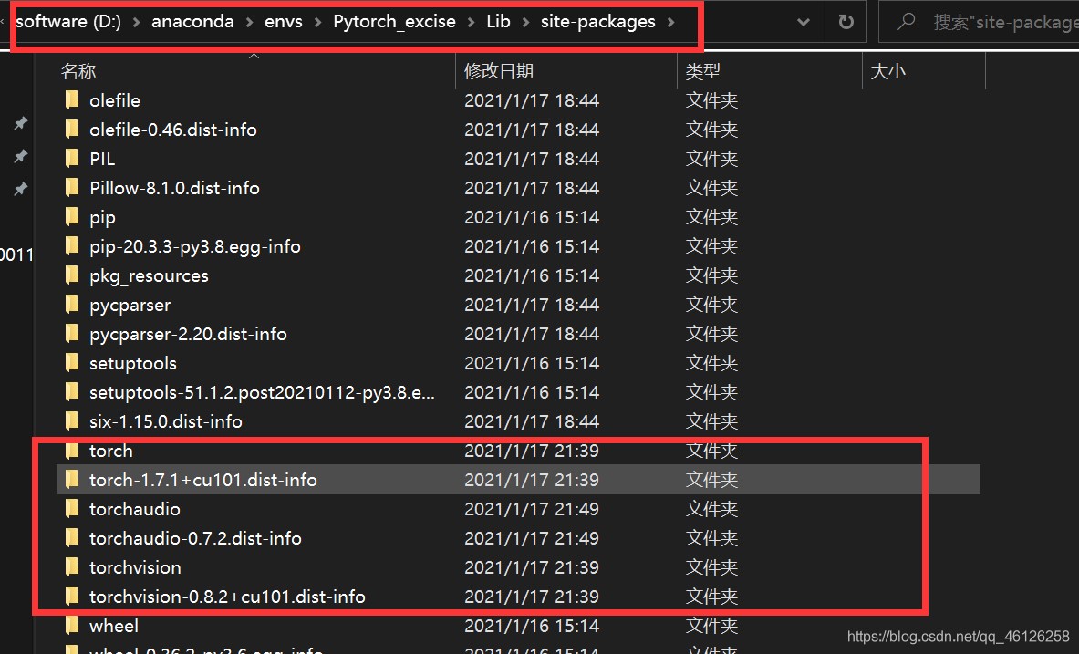 D:\anaconda\envs\Pytorch_excise\Lib\site-packages,同理按照上述方法删除cpu 版本的torch