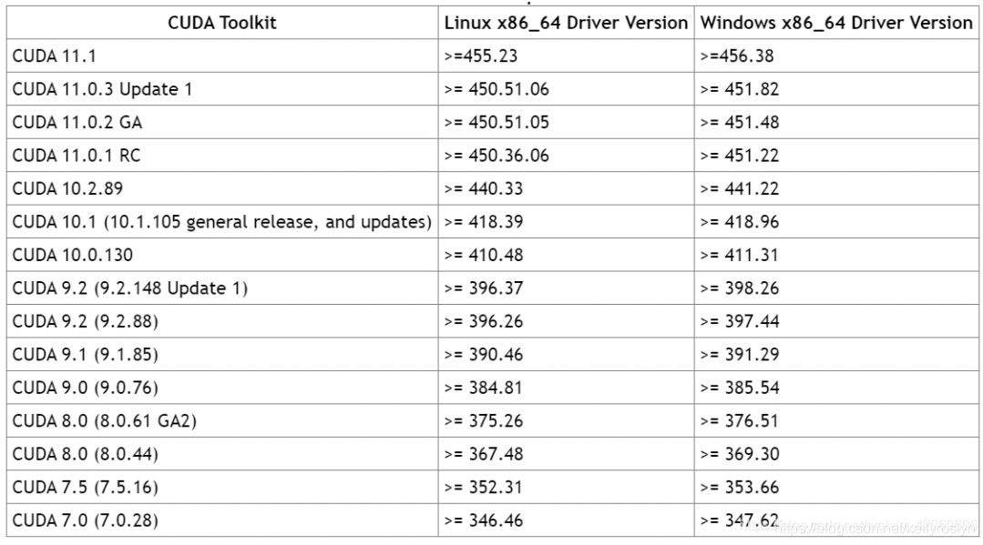 根据下图判断自己的CUDA版本是否符合要求(装的CUDA和cuDNN保持一致,版本号可以比10.2低)